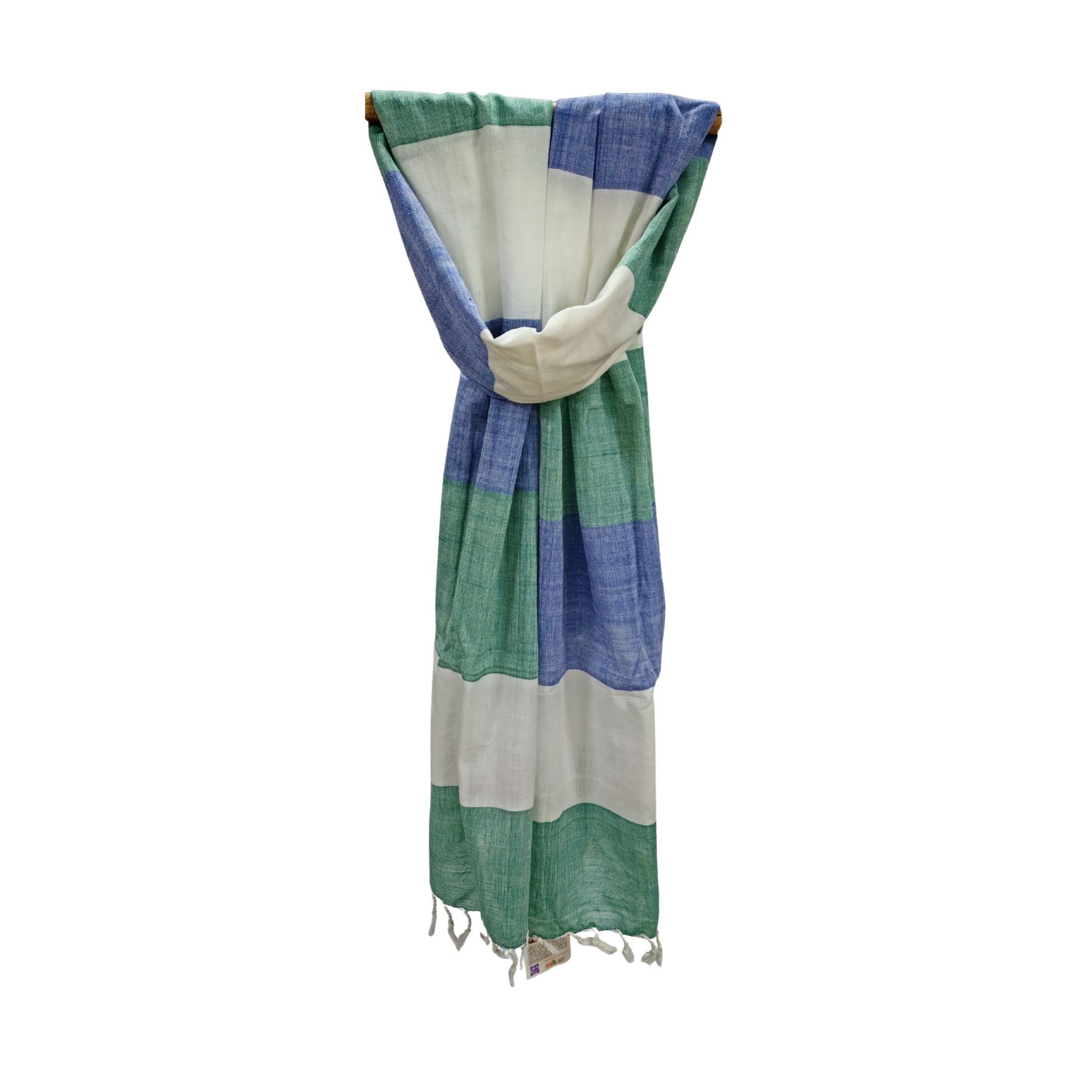 Assam Cotton Stole Blue & Green Stripes || Saras Aajeevika
