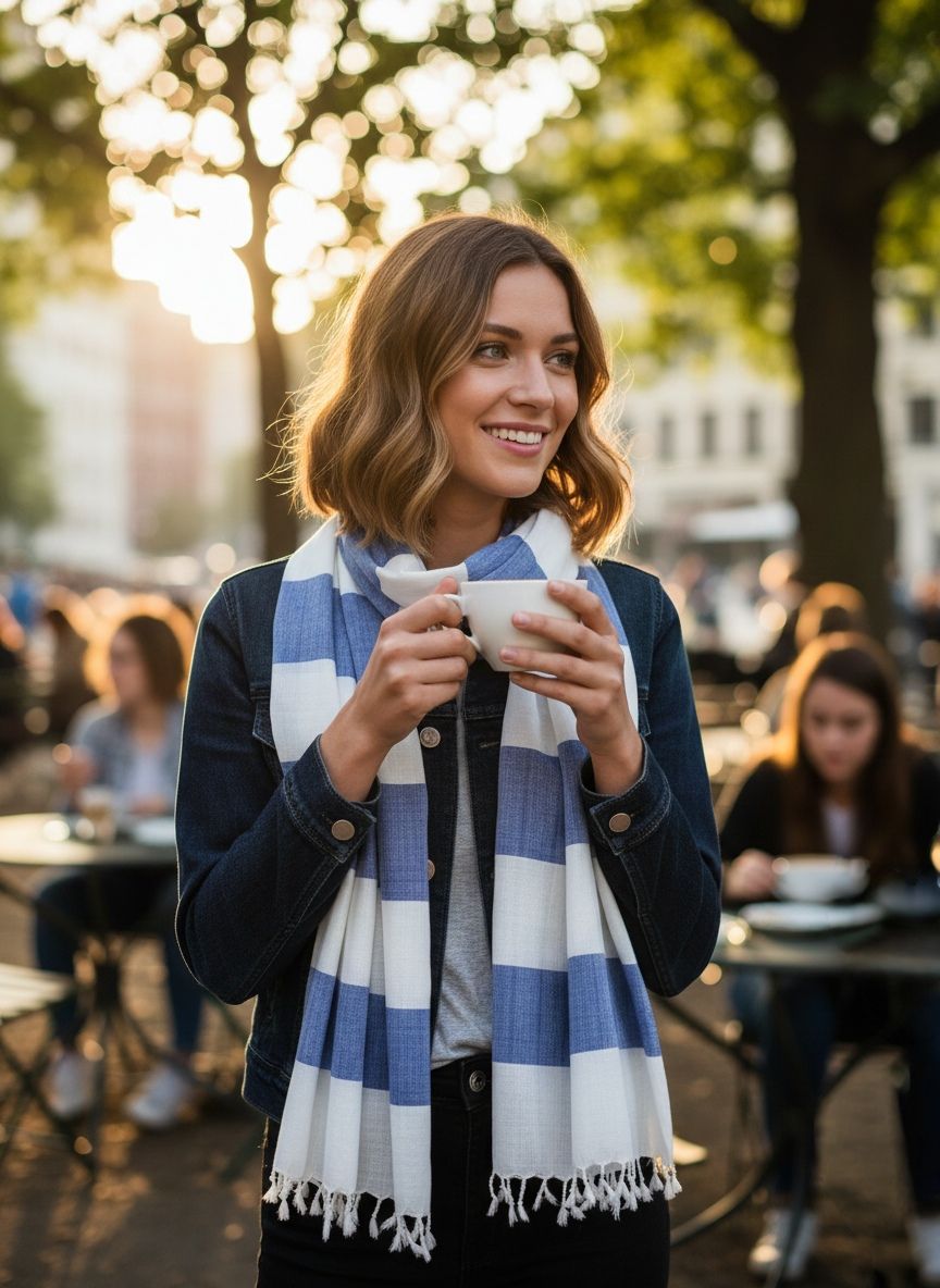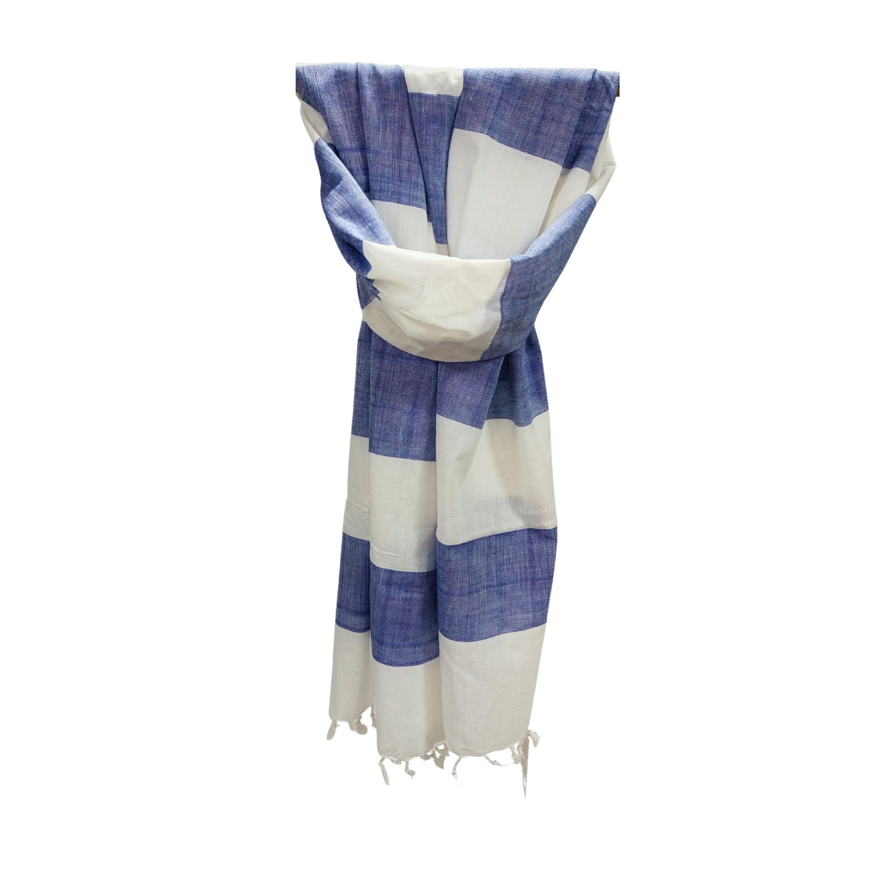 Assam Cotton Stole Blue Stripes || Saras Aajeevika