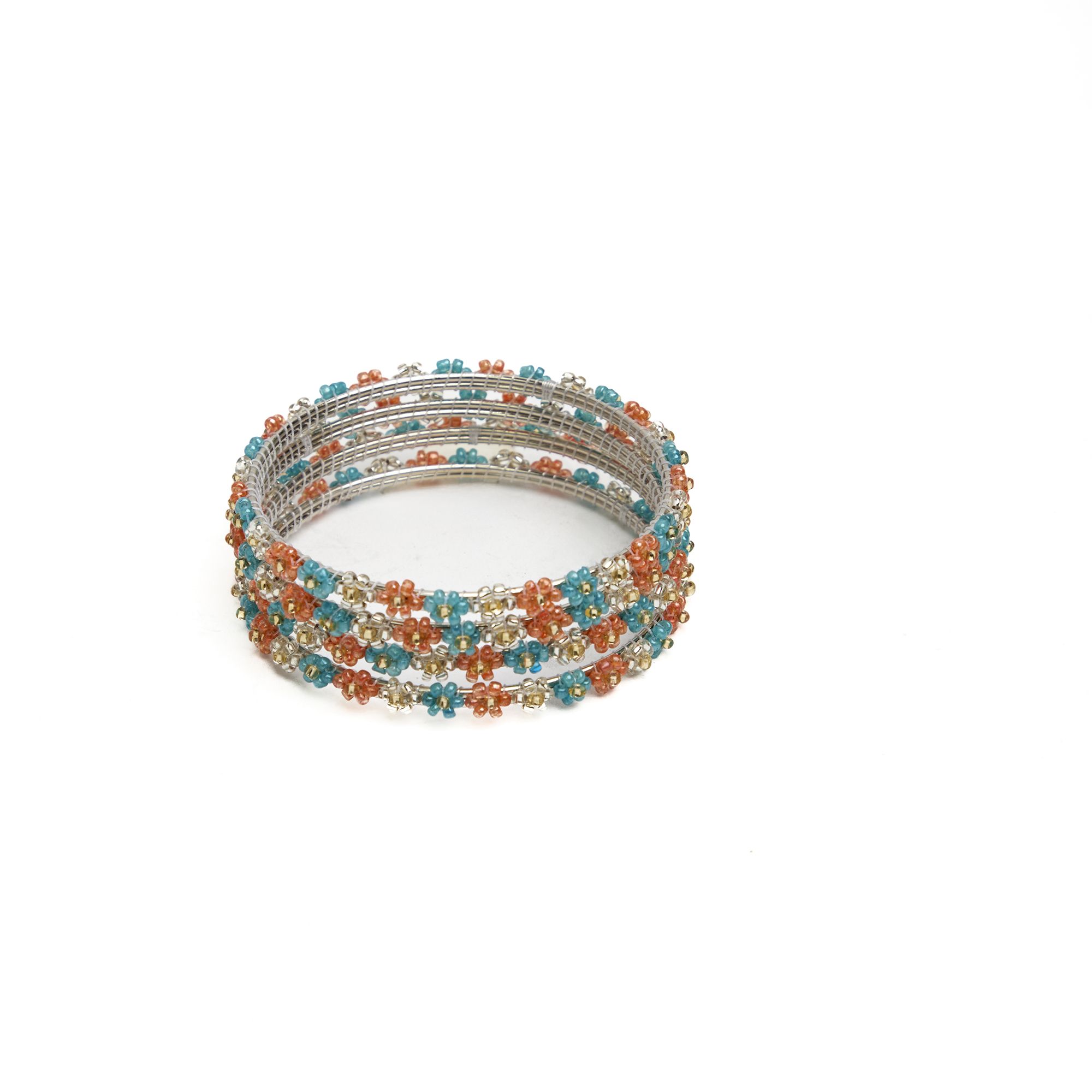 Beads Bangles || Blue, Orange and Silver Color || Set of 4 || Saras Aajeevika