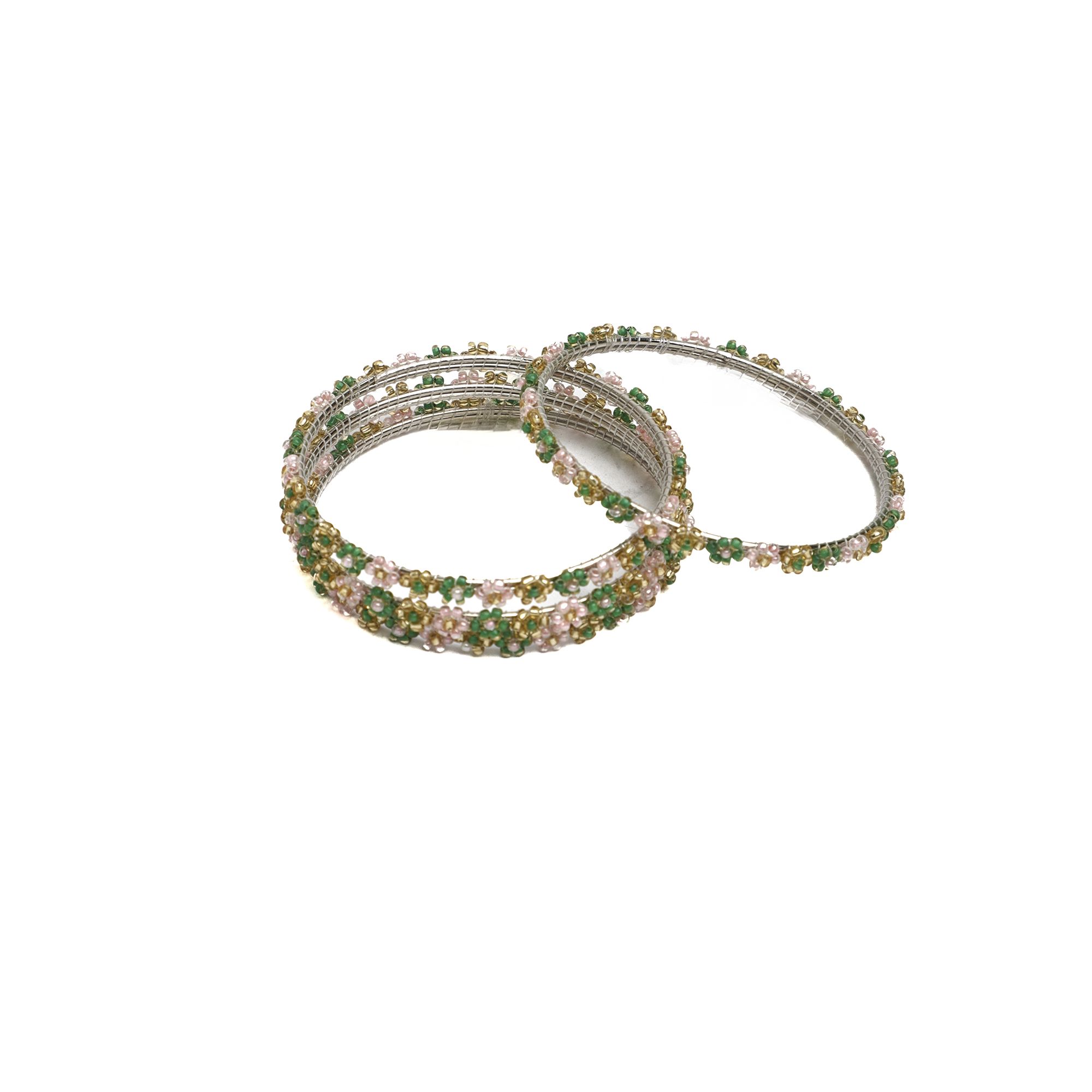 Beads Bangles || Green, Pink and Gold Color || Set of 4 || Saras Aajeevika