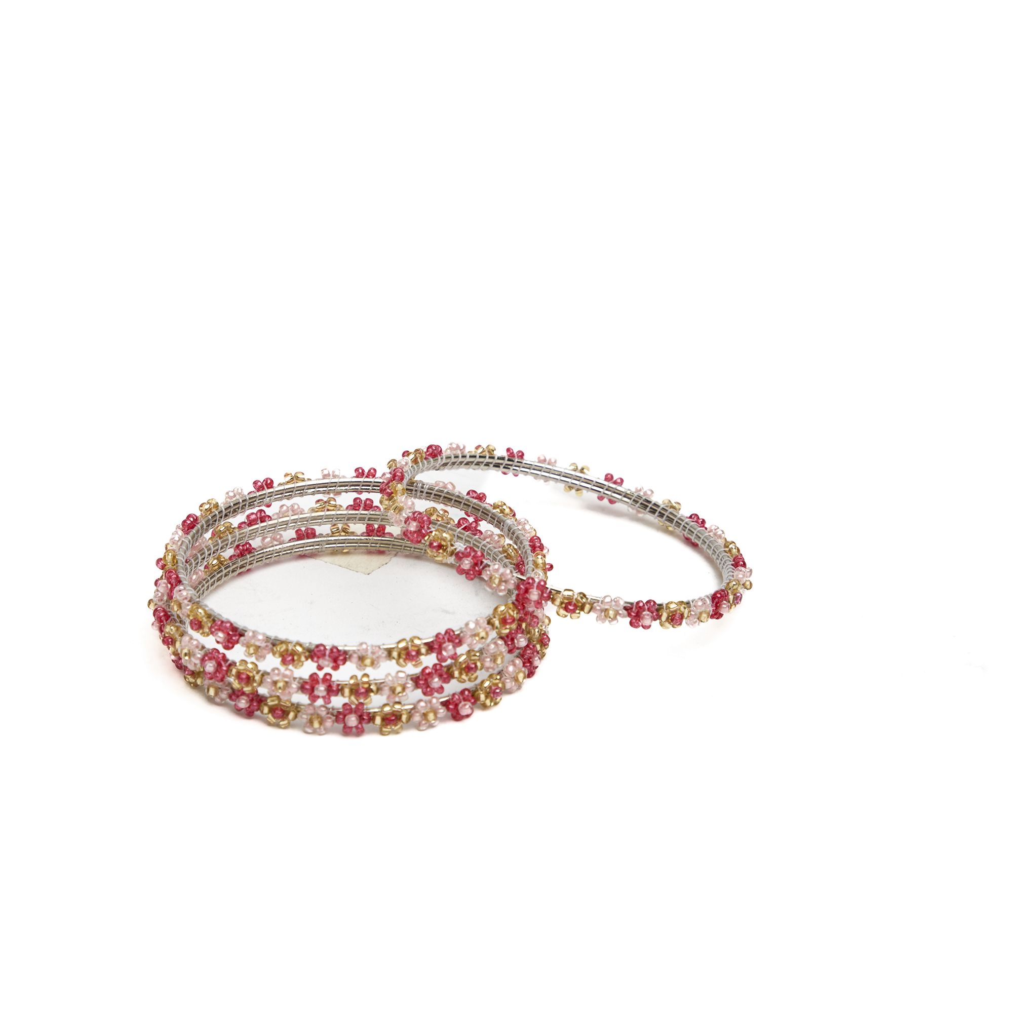 Beads Bangles || Pink & Gold Color || Set of 4 || Saras Aajeevika