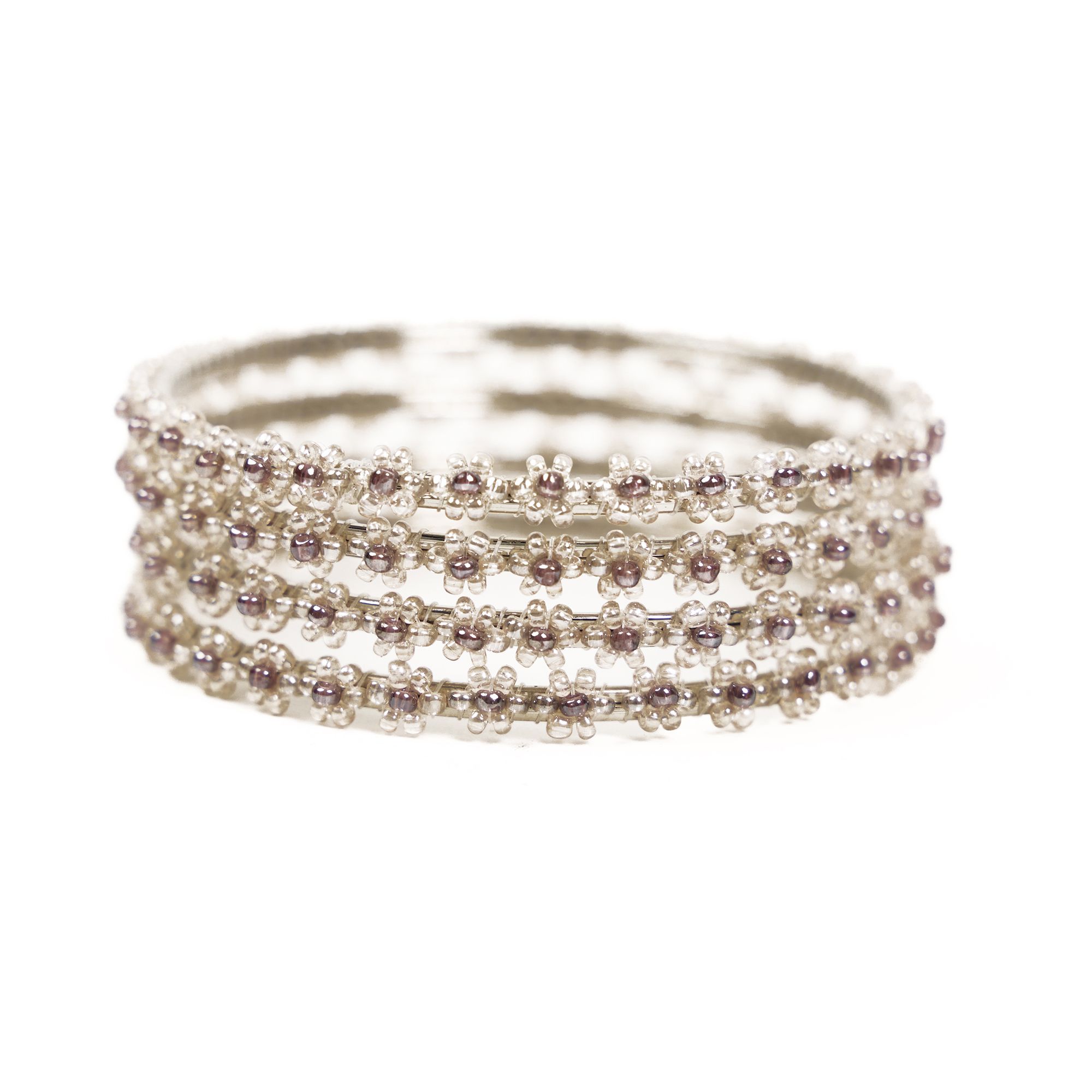 Beads Bangles || Silver & Purple Color || Set of 4 || Saras Aajeevika
