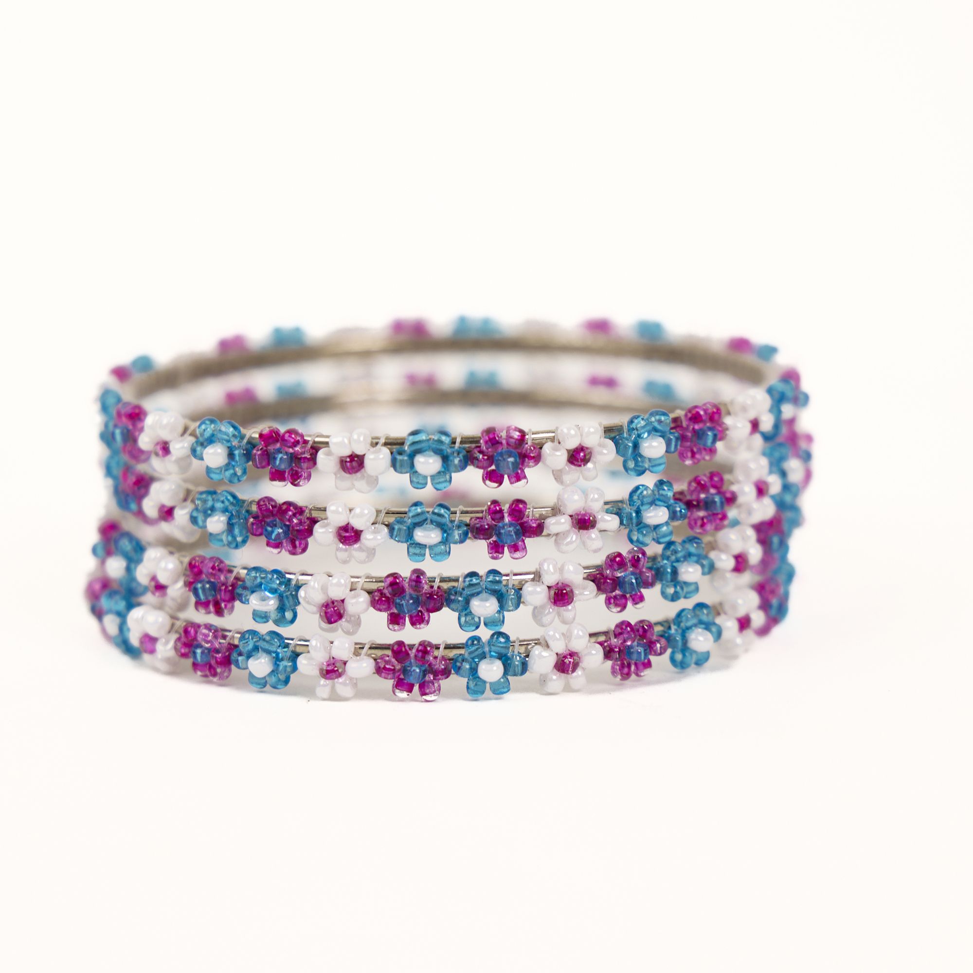 Beads Bangles || White, Blue and Purple Color || Set of 4 || Saras Aajeevika