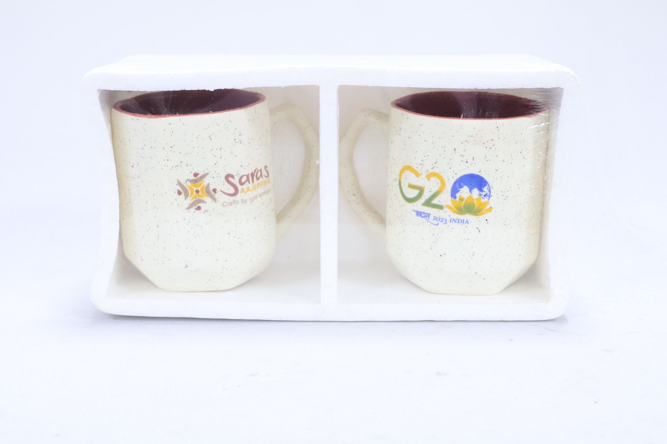 Saras Aajeevika Introducing Khurja Souvenir Mug (Set of 2) in White