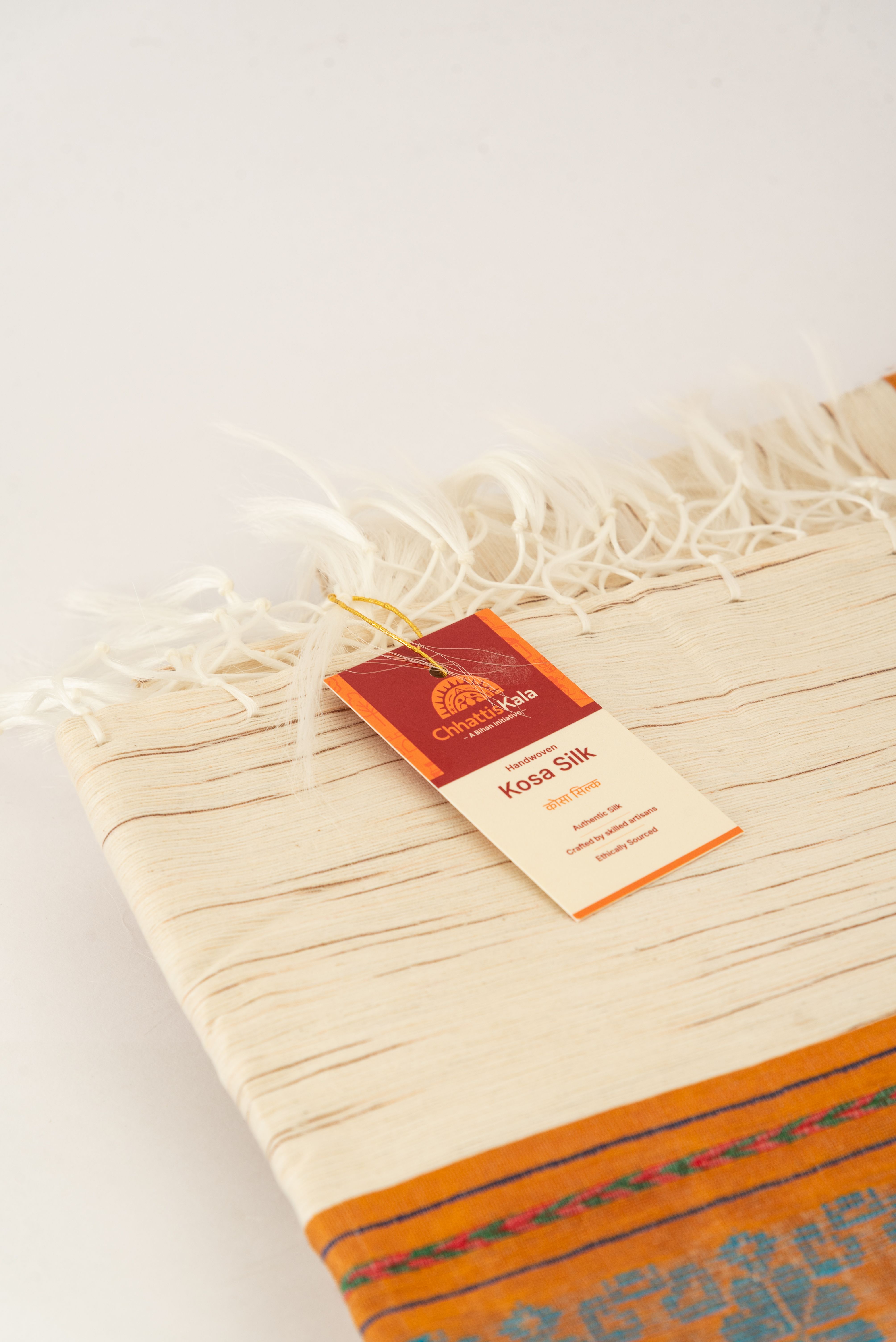 100% Pure Kosa Silk: Hand-extracted from silk cocoons found in the wild forests of Chhattisgarh, ensuring a natural, breathable, and durable fabric.