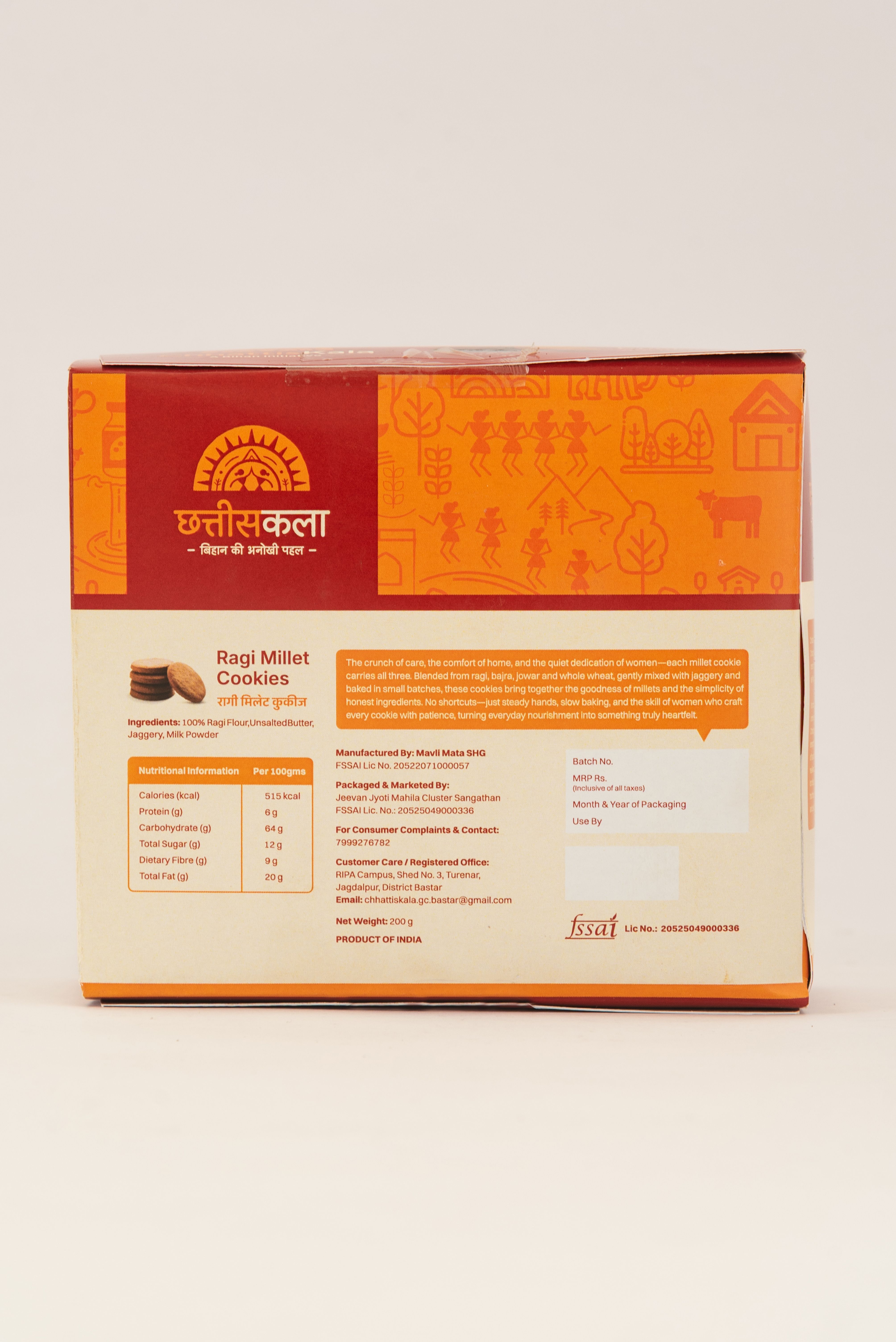 Discover the goodness of Chhattiskala Ragi Millet Cookies, thoughtfully crafted by the Jeevan Jyoti Mahila Cluster Sangthan. Sourced from tribal and rural SHGs of Chhattisgarh, these cookies are naturally sweetened with jaggery and contain no artificial colors, flavors, or preservatives.