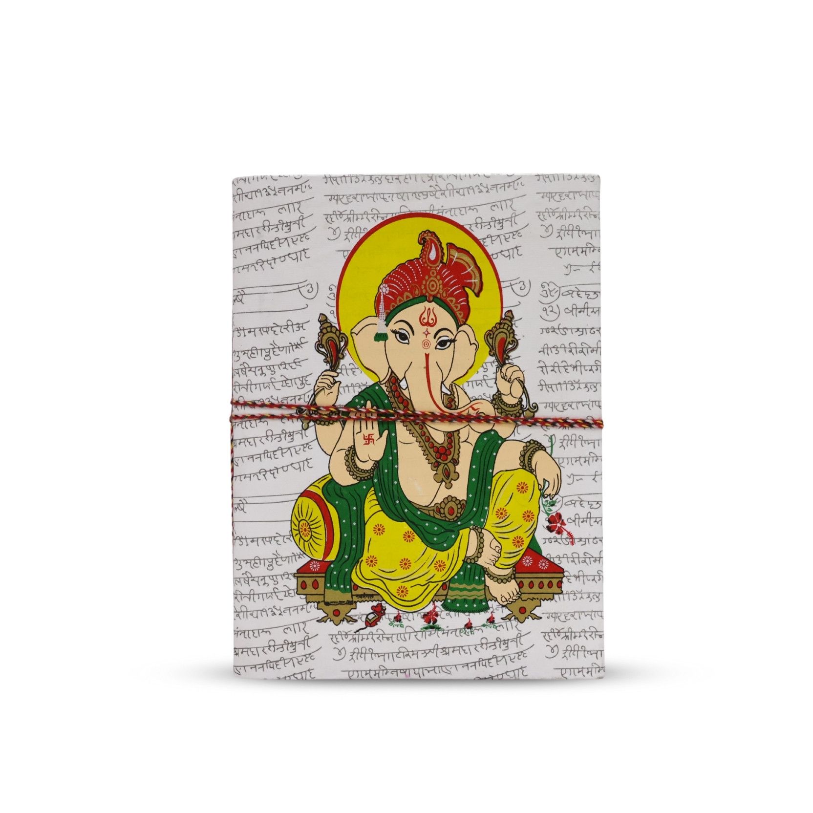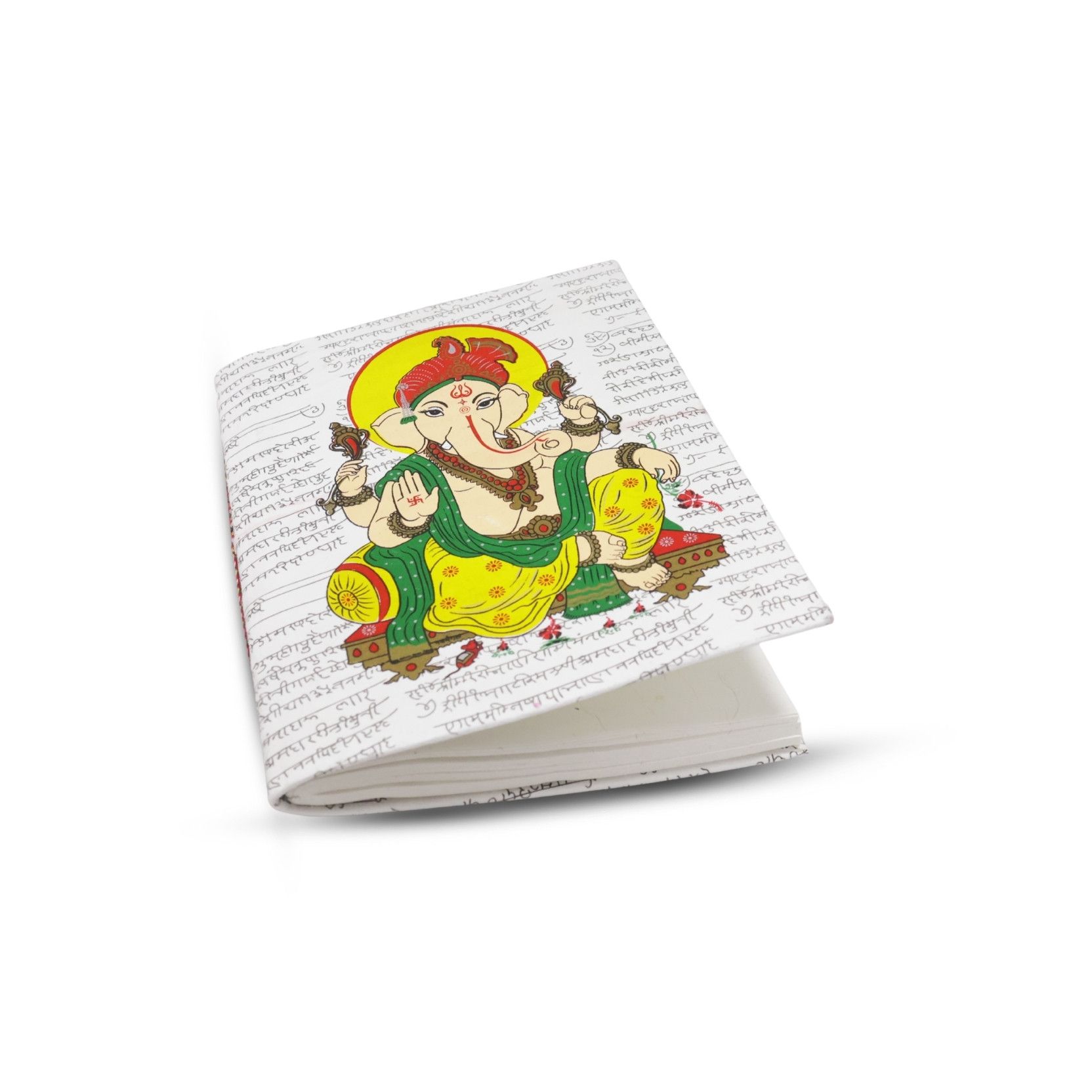 Handmade Paper Diary || Ganesha Print || White || 6x8 || Saras Aajeevika
