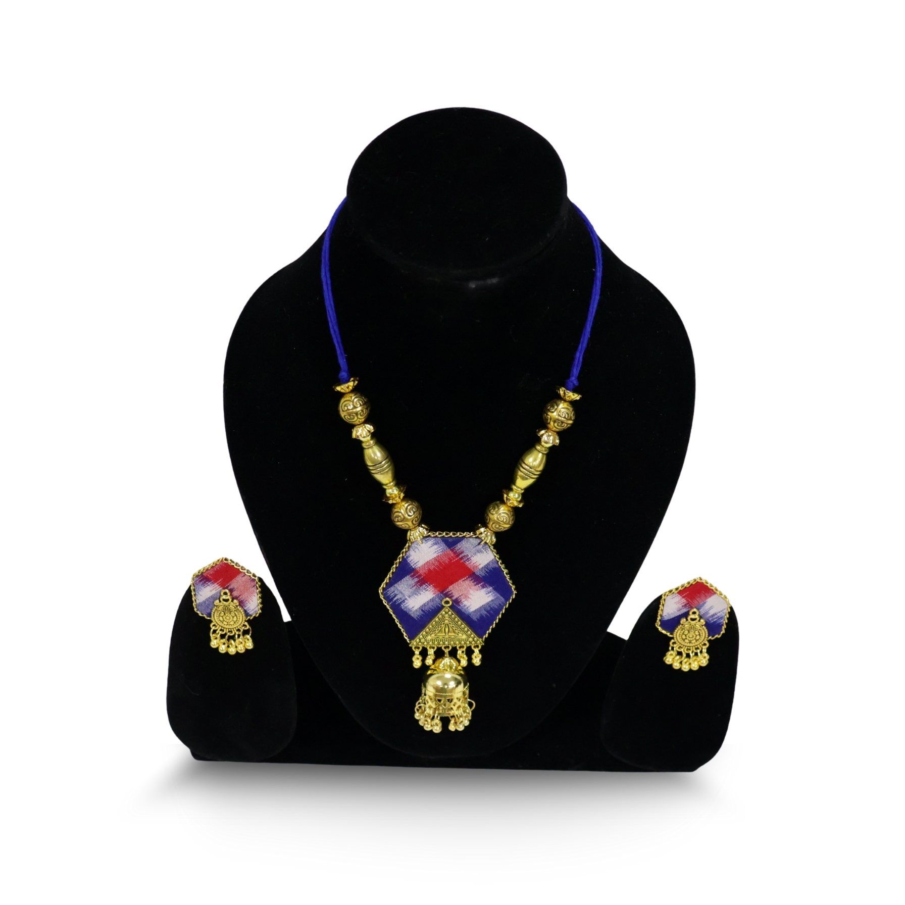 Handmade Sambalpuri Fabric Golden Oxidized Necklace Set || Saras Aajeevika