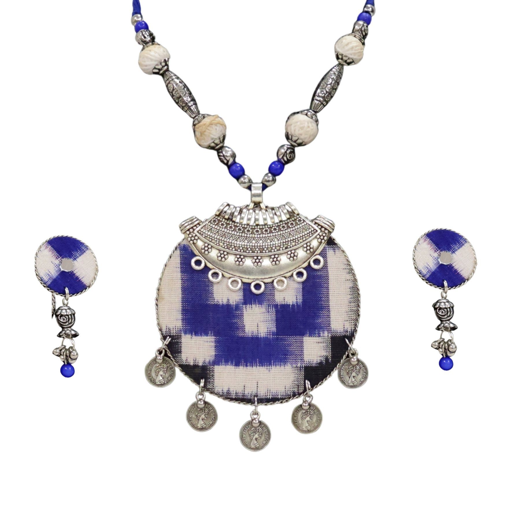 Handmade Sambalpuri Fabric || Maa Durga Silver Oxidized || Necklace Set || Saras Aajeevika