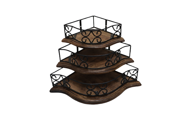 "Saras Aajeevika presenting Wooden Corner Set Of 3 made by Shahreen SHG of Uttar Pradesh. It is hand made and made up of Sheesham wood and used to display the small items, such as keys, phones, wallets or trophies on the shelf, or install it above the toilet as a holder! Hanging it in the living room as a display shelf is also a perfect idea. Comprises of 3 compartments for maximum utility, for Antique Burn Finish corner table 3 shelf suitable for corner showpiece display.