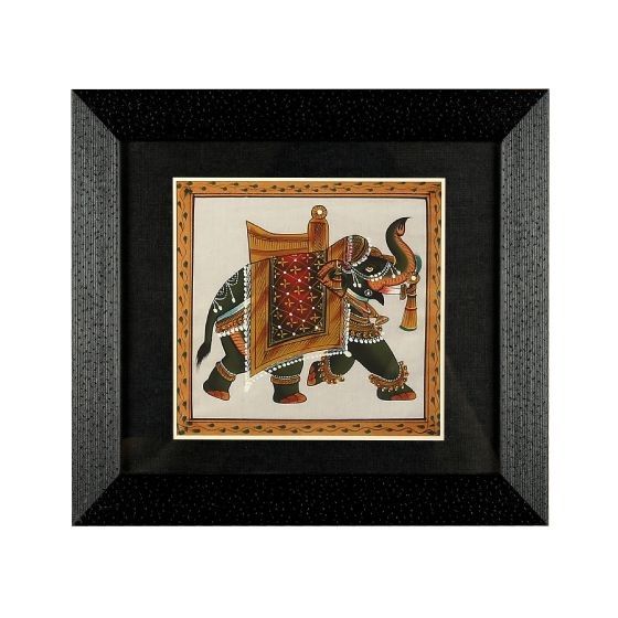 Miniature Painting Elephant Design Cotton Fabric With Frame 12*12"