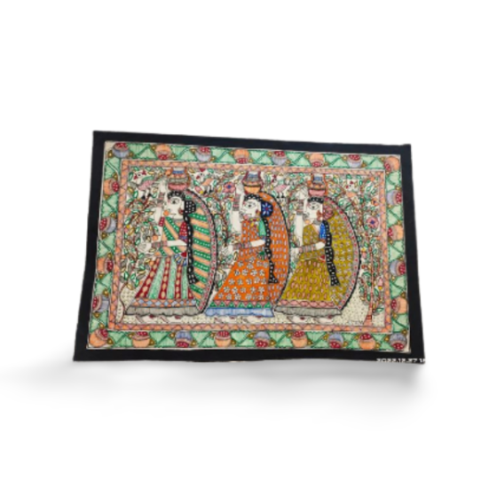 The Saras Aajeevika presenting PAINTINGS MADHUBANI 3 LADIES HANDMADE PAPER 11X15" made by Shilpagram Mahila Producer Co SHG of Bihar.