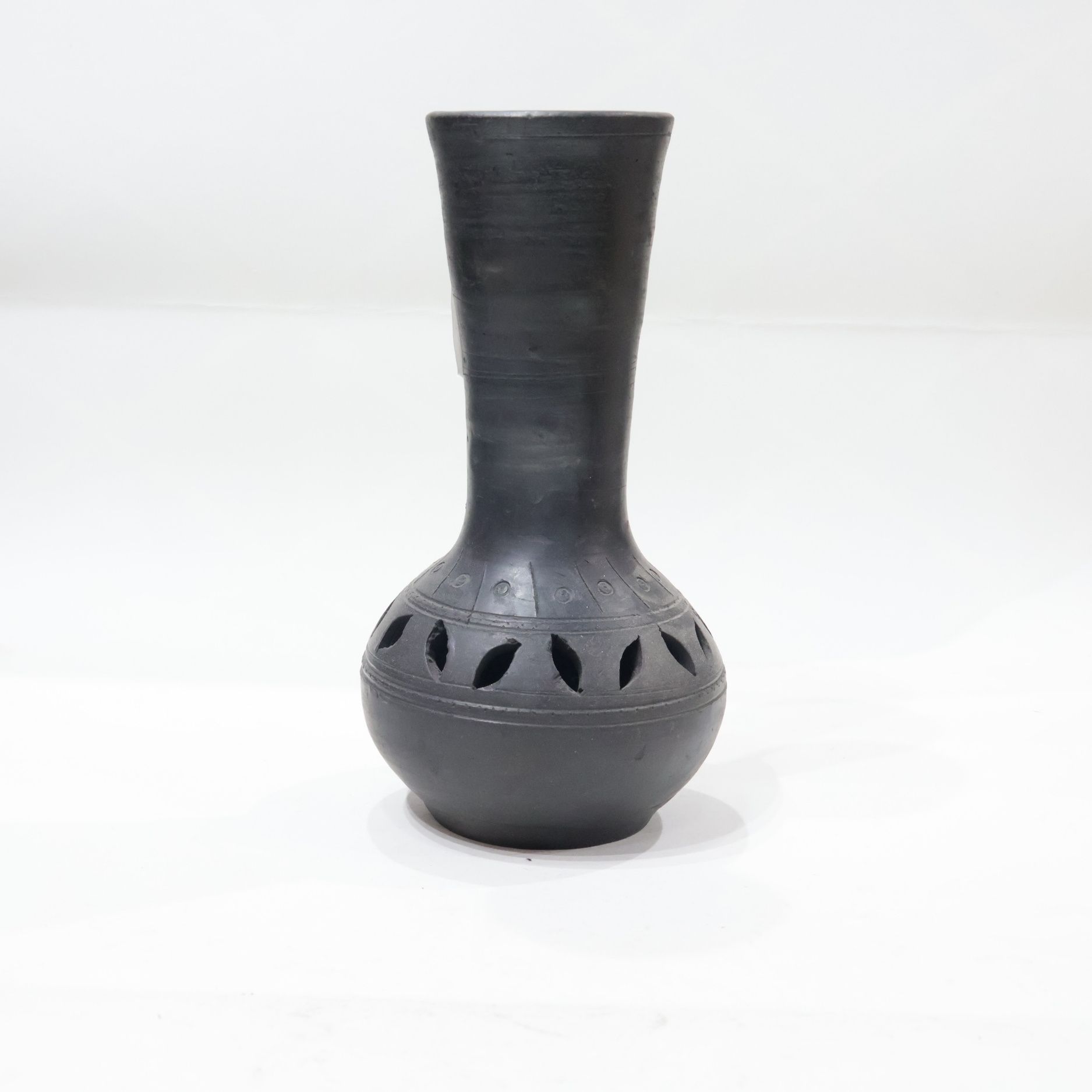 The Saras Aajeevika Presenting Handcrafted black pottery flower pot made by Balaji  SHG of Rajasthan. Elegant black pottery flower pot handcrafted by skilled artisans. A perfect blend of tradition and modern décor, ideal for fresh or dried floral arrangements. Adds a rustic charm to your home or office space.