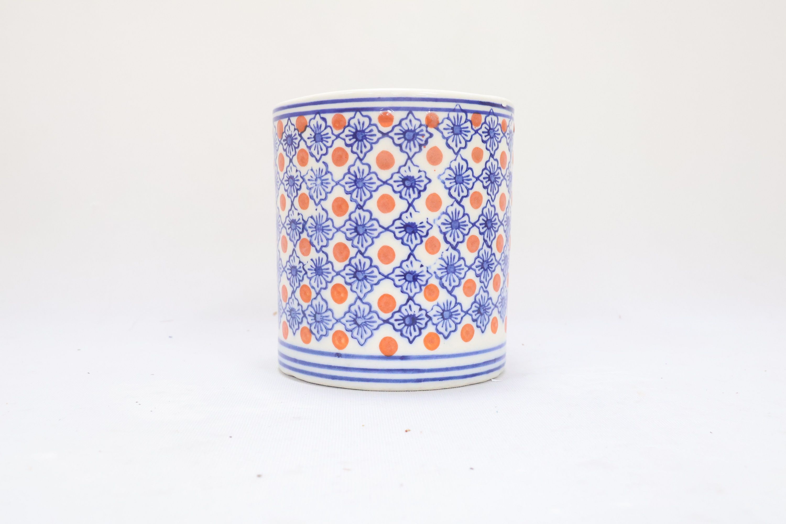Khurja Pottery Indoor Pot Pipe Shape Red and Blue Colour Medium Size 5 Inches Khurja Pottery Indoor Pot Pipe Shape Red and Blue Colour Medium Size 5 Inches Khurja Pottery Indoor Pot Pipe Shape Red and Blue Colour Medium Size 5 Inches