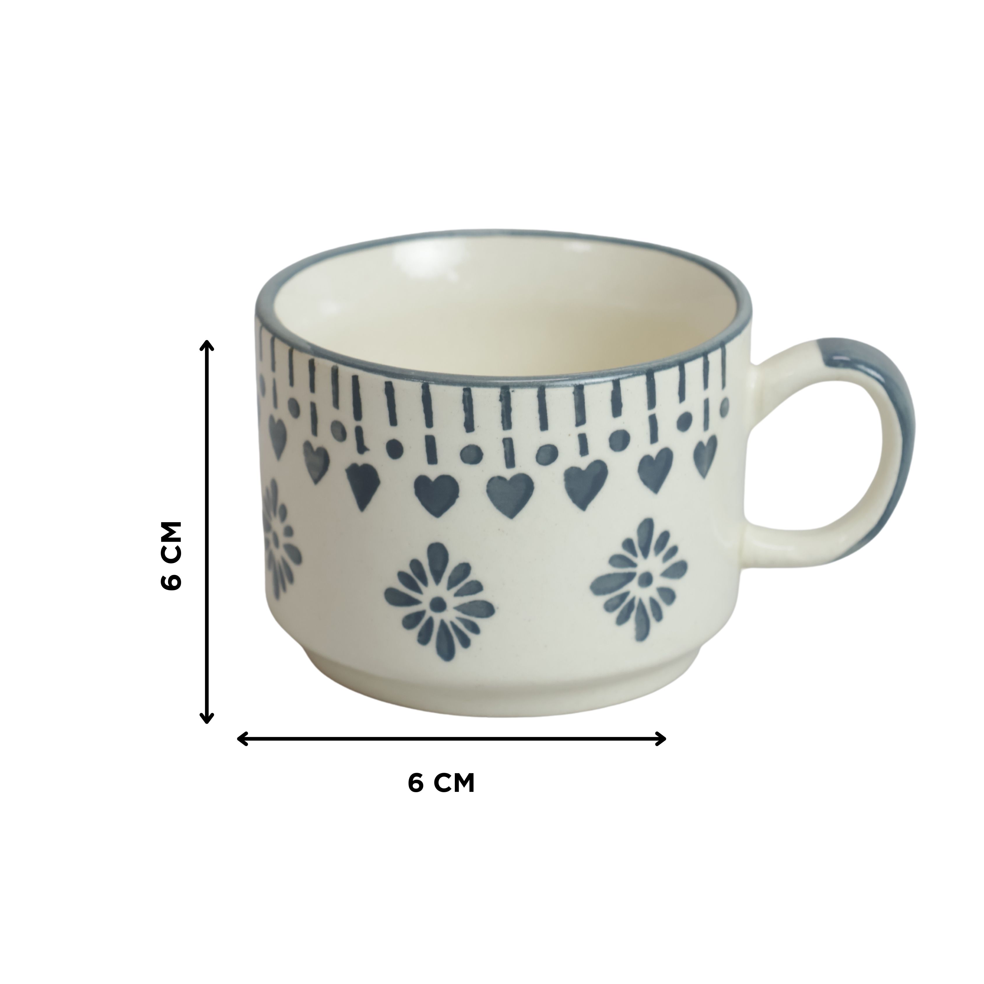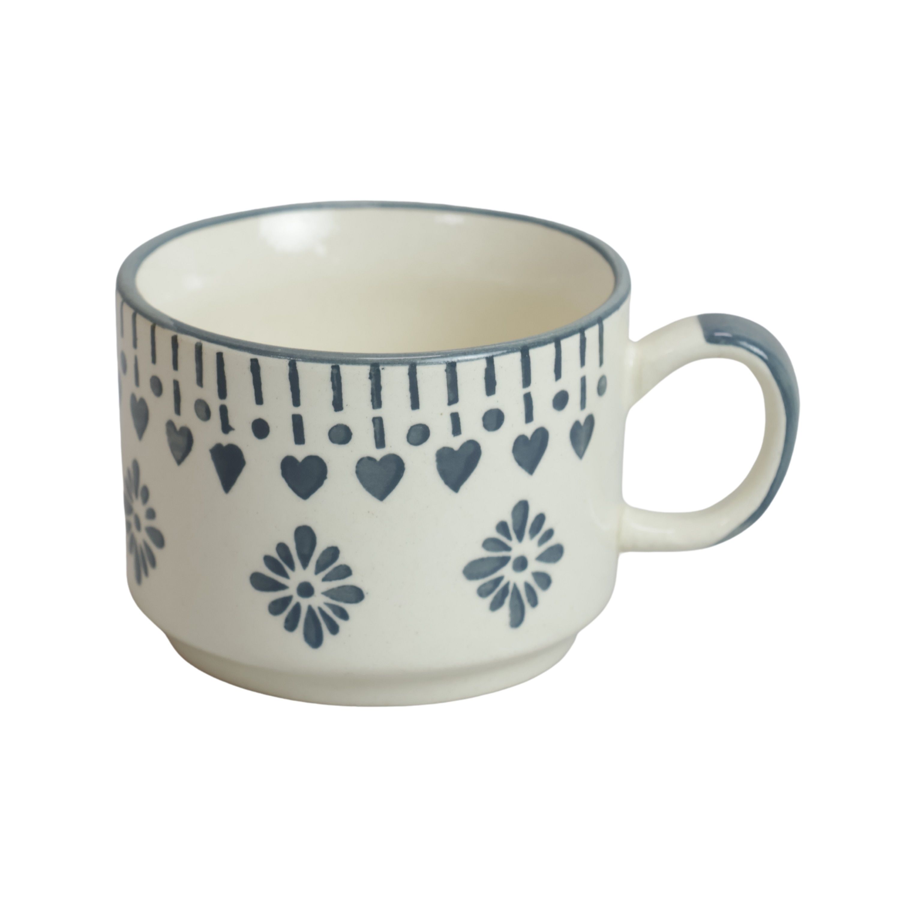 Khurja Pottery Murli Cup Painting Grey Flower So6 | |Ceramic Cup | Microwave Safe | Hand painted | Kitchen ware | Home Décor | Grey