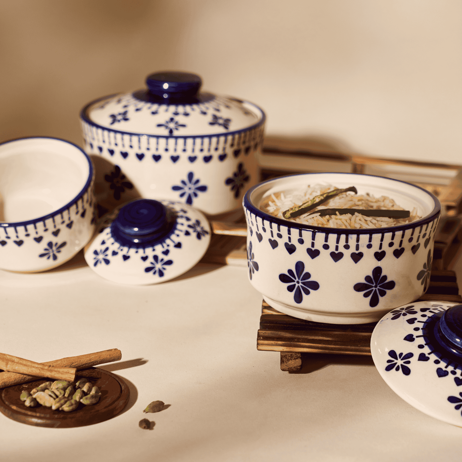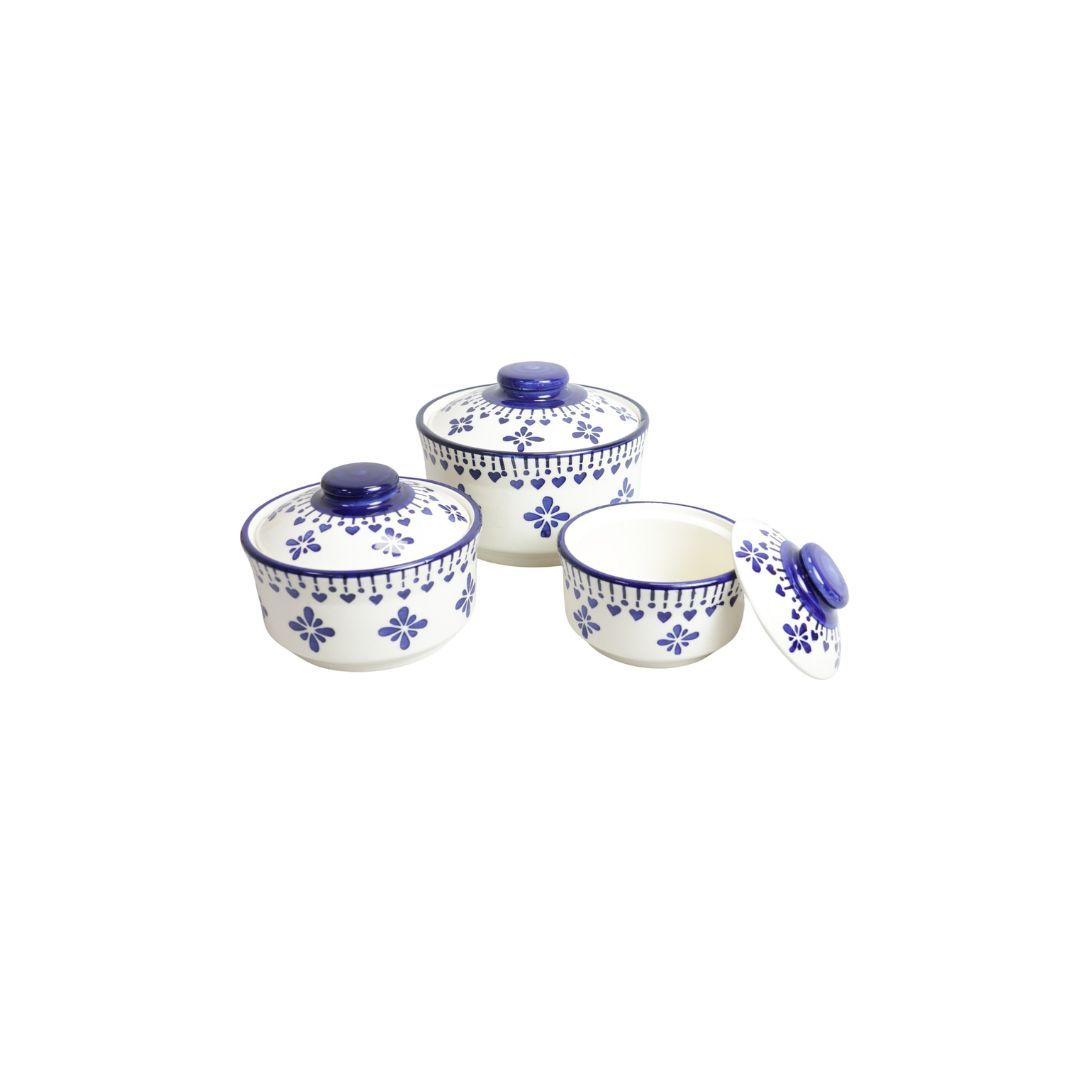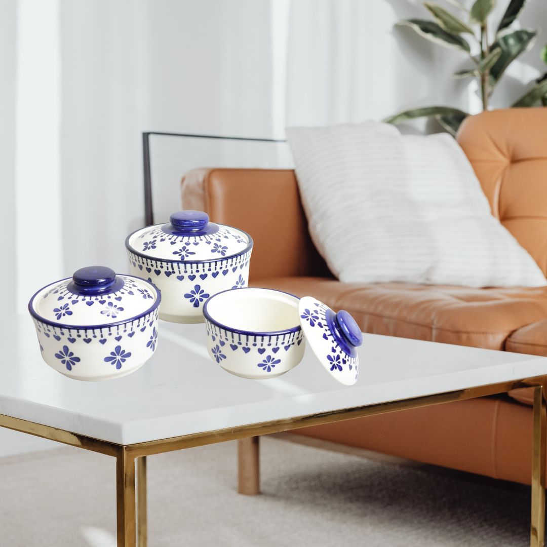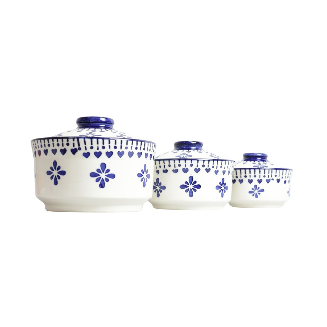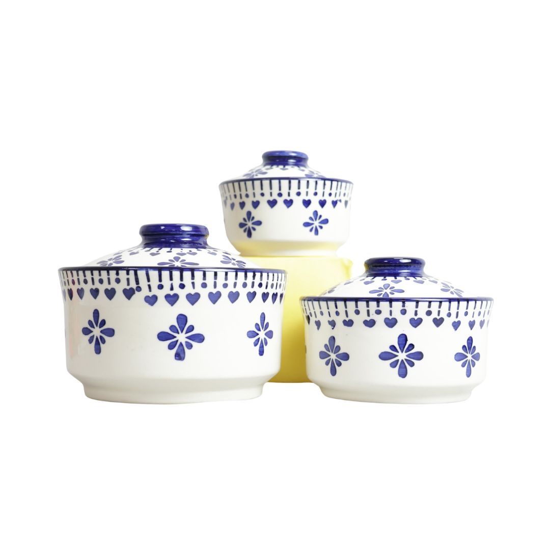 Introducing Saras Aajeevika's Khurja Pottery Donga 3Pc White and blue Color