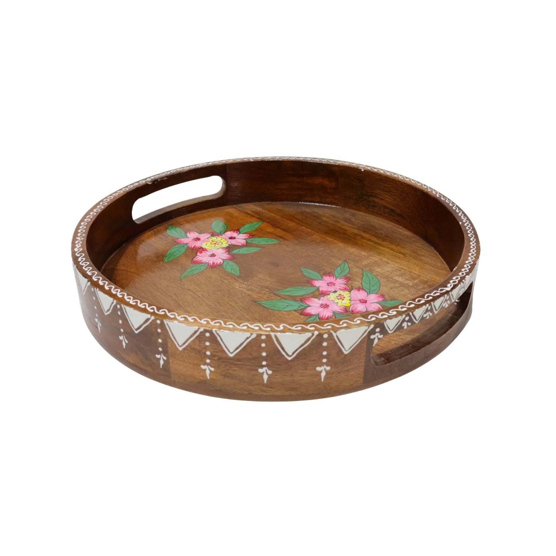 The Saras Aajeevika presents a beautifully handcrafted Wooden Round Tray with 4 Barni, made by skilled artisan Bhairu Ji Dahmikala from Rajasthan. This elegant set combines traditional craftsmanship with functional design, perfect for serving snacks, storing spices, or enhancing your kitchen décor. The smooth wooden finish and vibrant hand-painted patterns reflect the rich cultural heritage of Rajasthan, making it both a practical utility item and a charming decorative piece for your home.