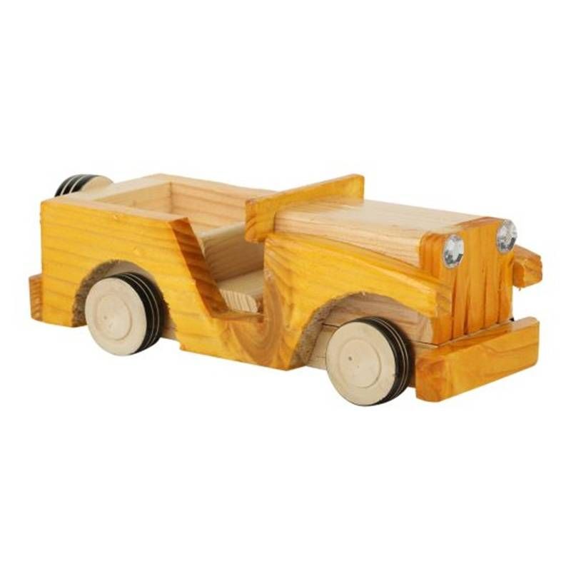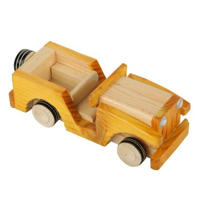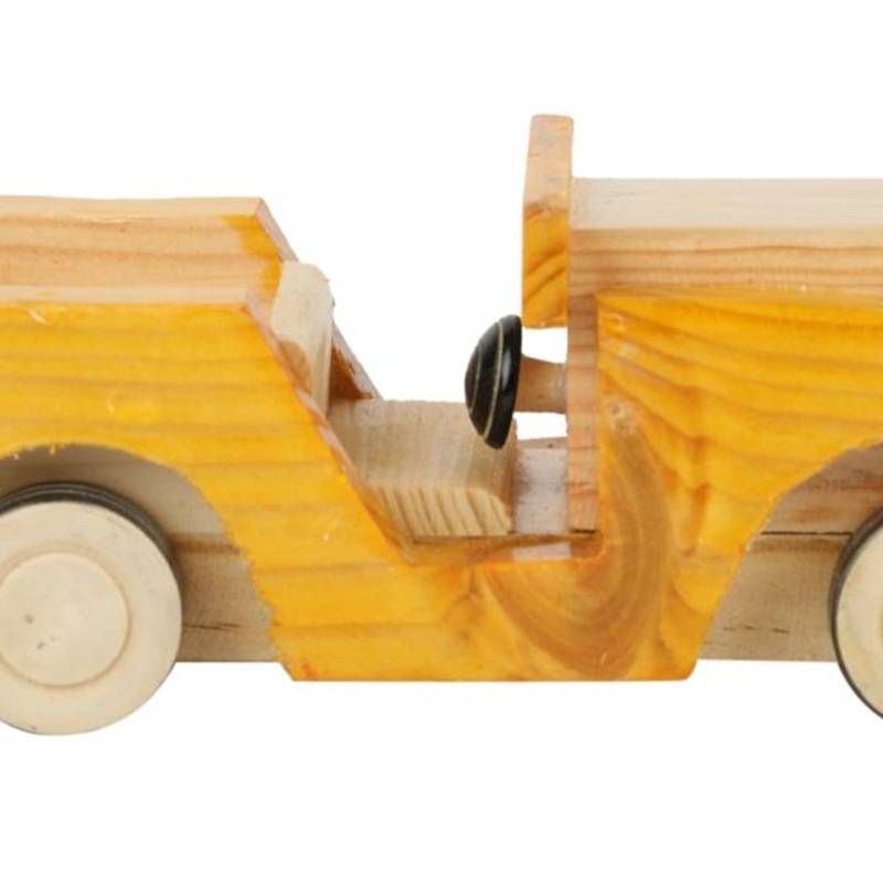 Handcrafted Wooden Vintage Toy Car – Yellow & Natural Finis