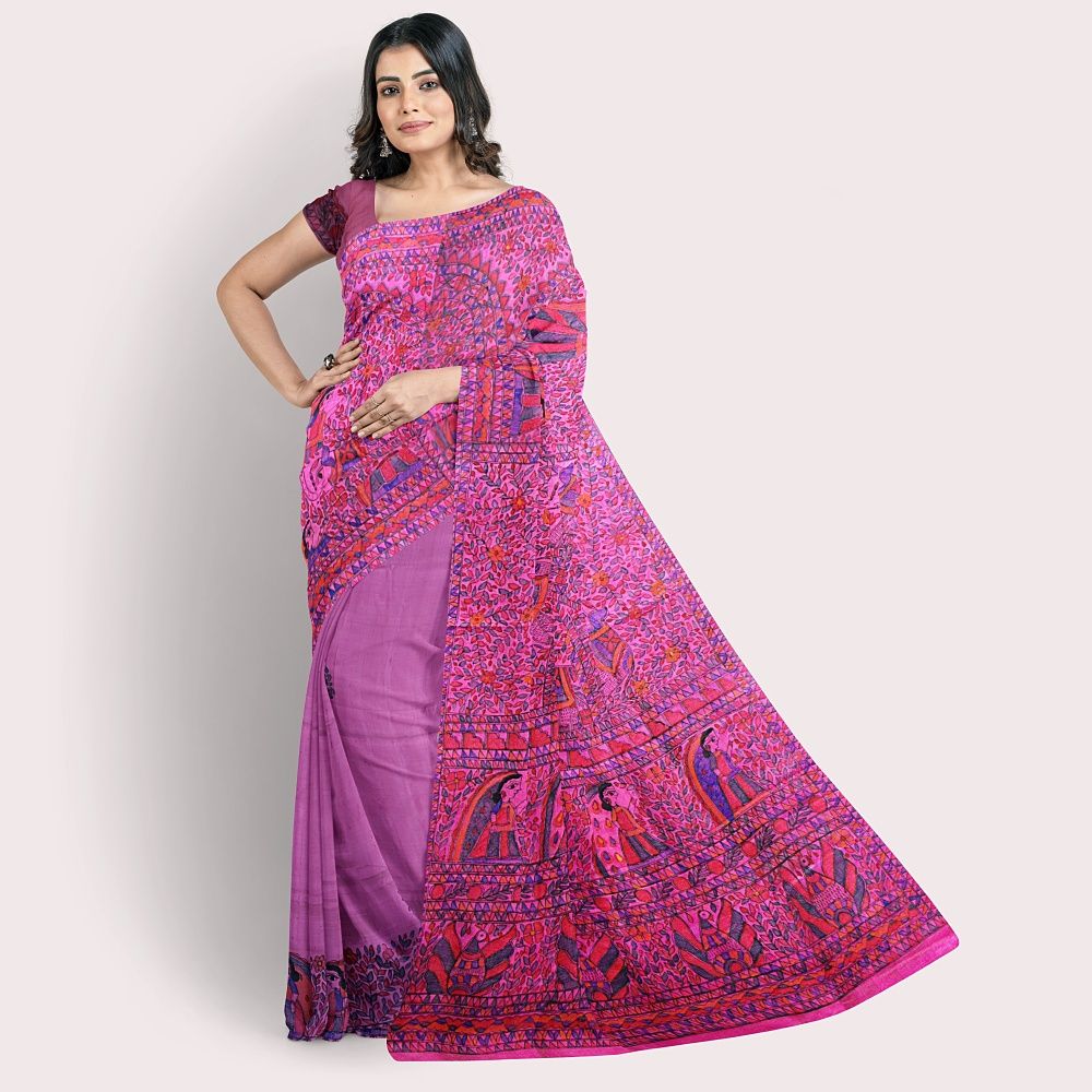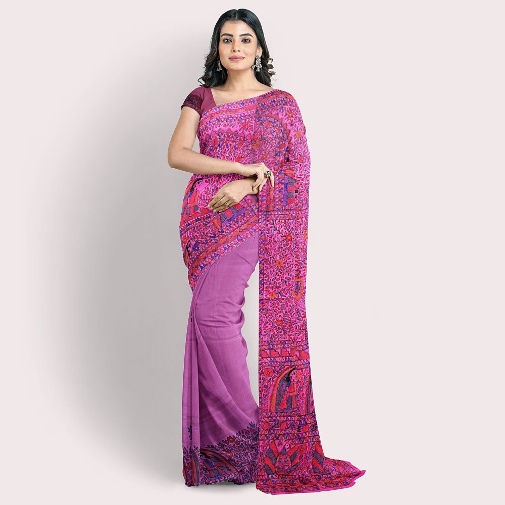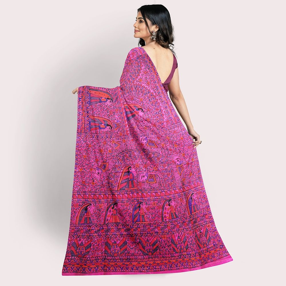 Madhubani Painting Pure Silk Saree with Blouse || Pink || Saras Aajeevika Madhubani Painting Pure Silk Saree with Blouse || Pink || Saras Aajeevika Madhubani Painting Pure Silk Saree with Blouse || Pink || Saras Aajeevika