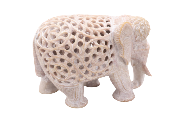 These hathi (elephant) figures are typically handcrafted from natural marble, often using high-quality white or light-toned marble like that popular in Indian stone craft. Marble carving is a traditional craft in central India and nearby regions, with artisans using chisels, mallets, and fine tools to create smooth shapes and detailed motifs.