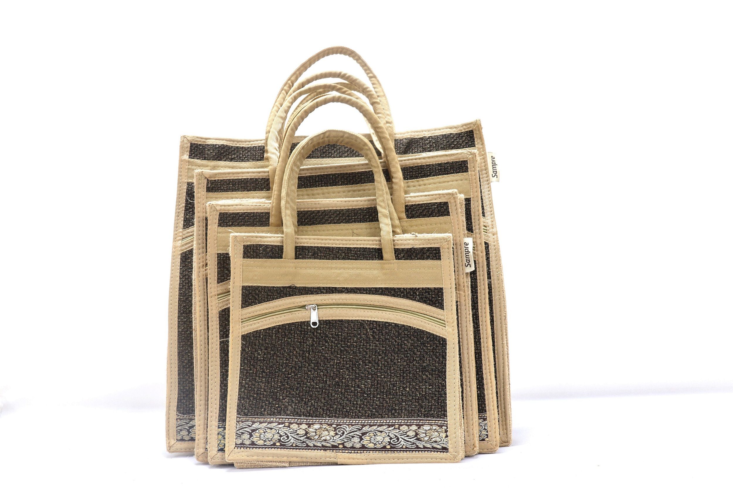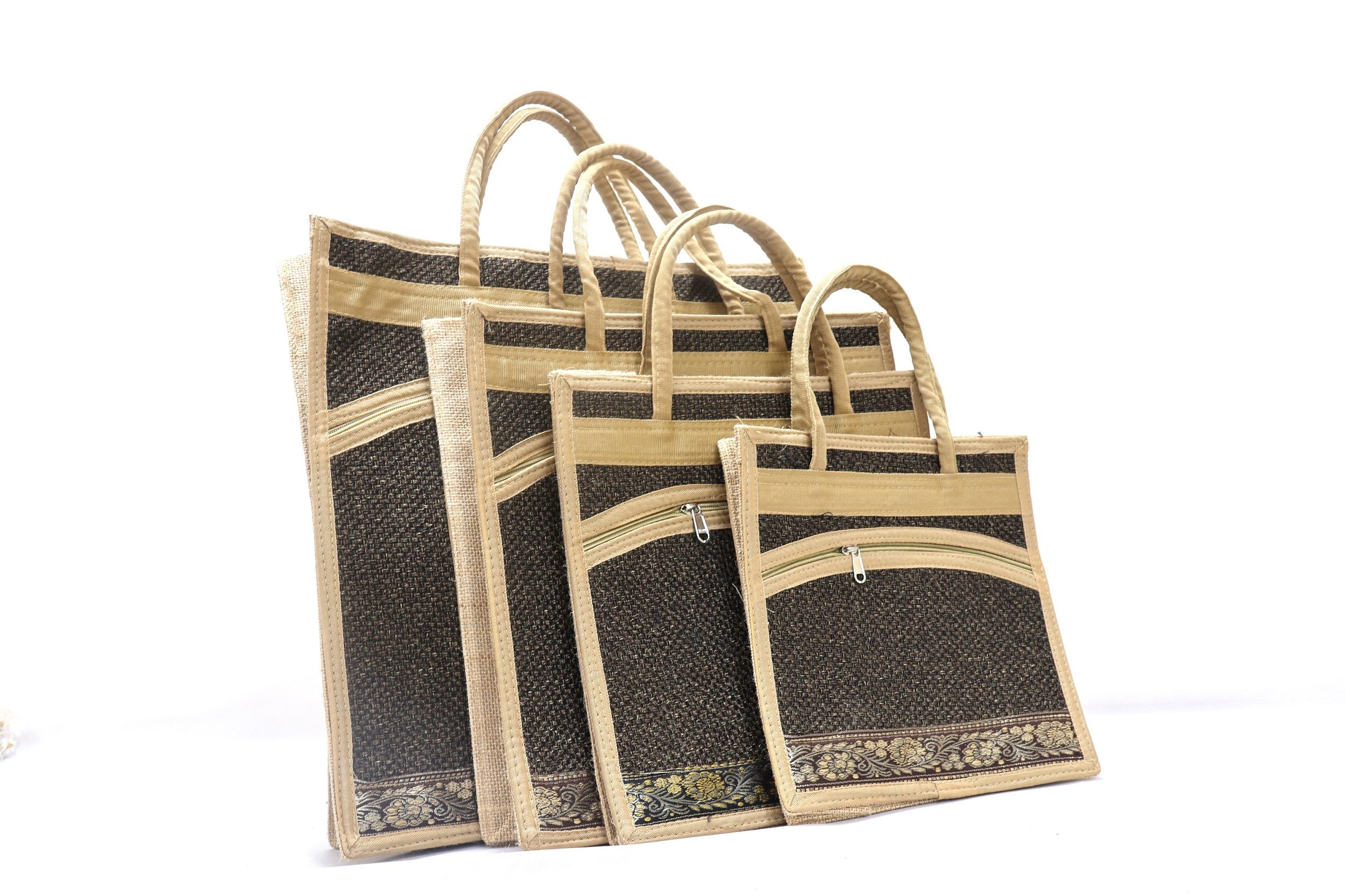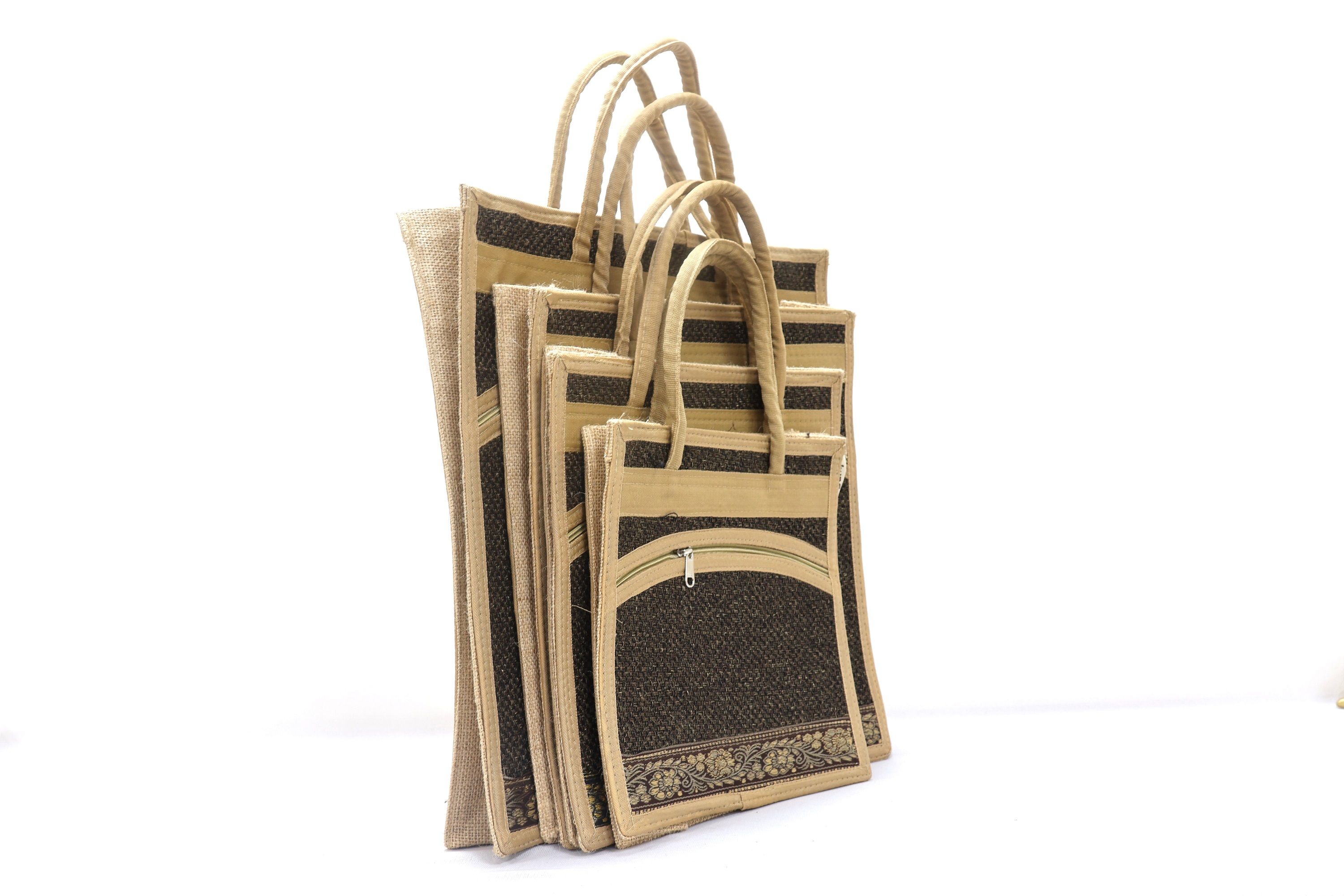 Introducing the eco-friendly Jute Bag Black Combo Zipper Pack (set of 4 pieces) from Saras Aajeevika