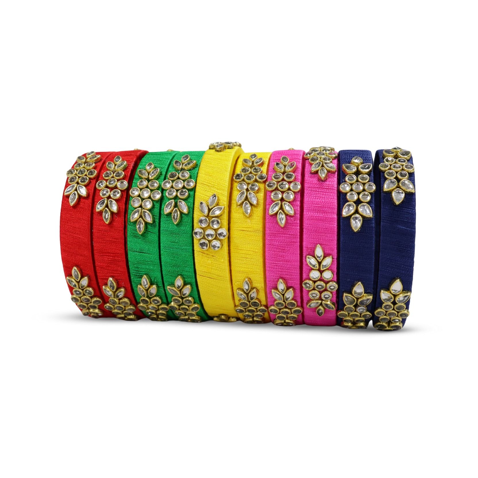 Silk Thread Kundan Kangan | Set of 10 || Multicolor || Saras Aajeevika