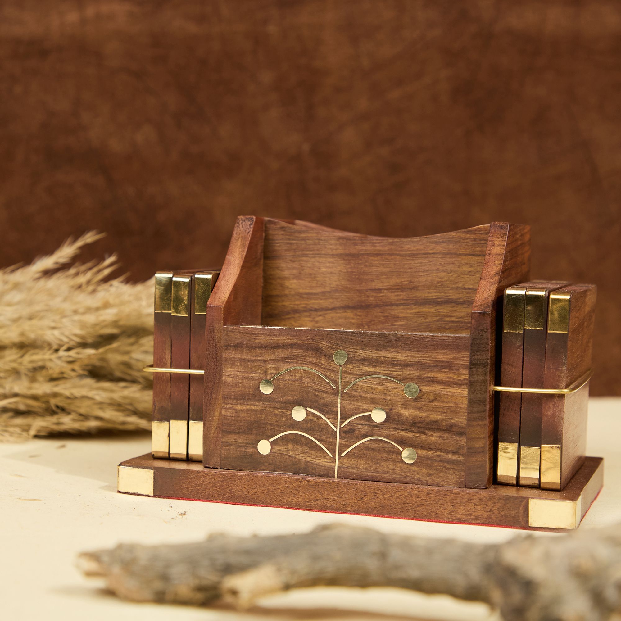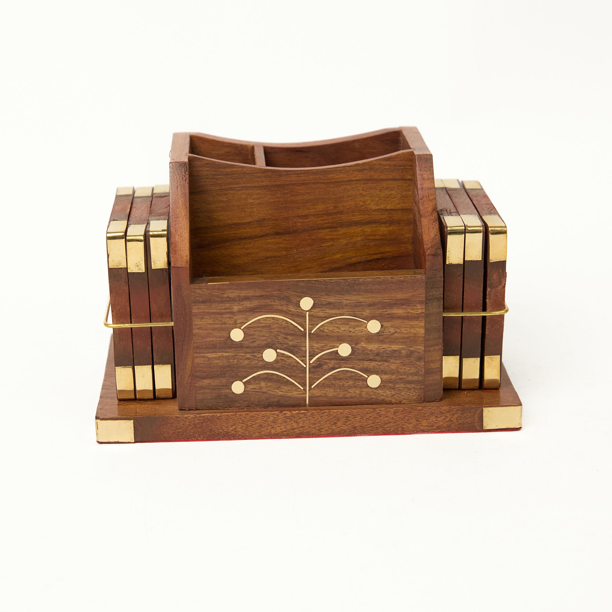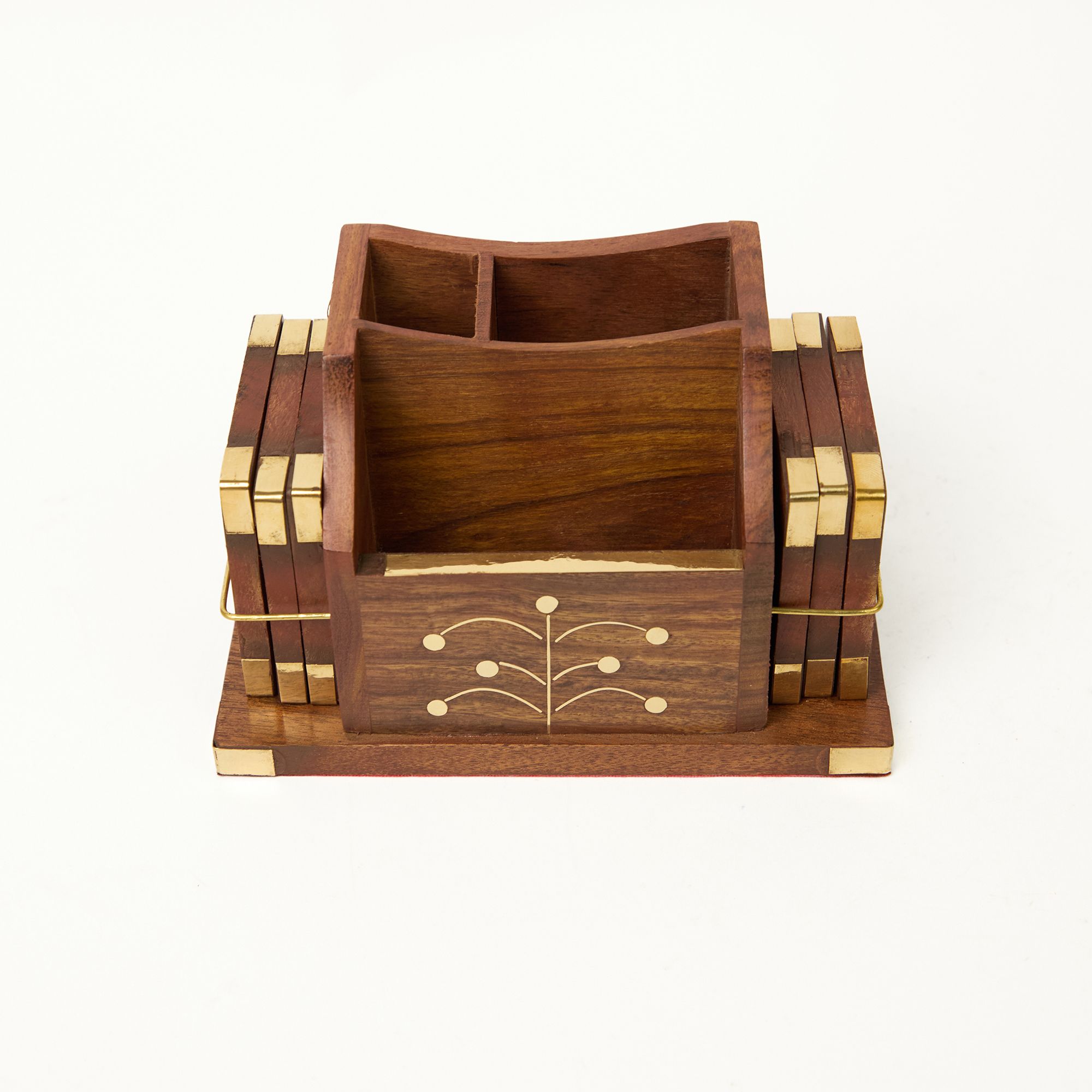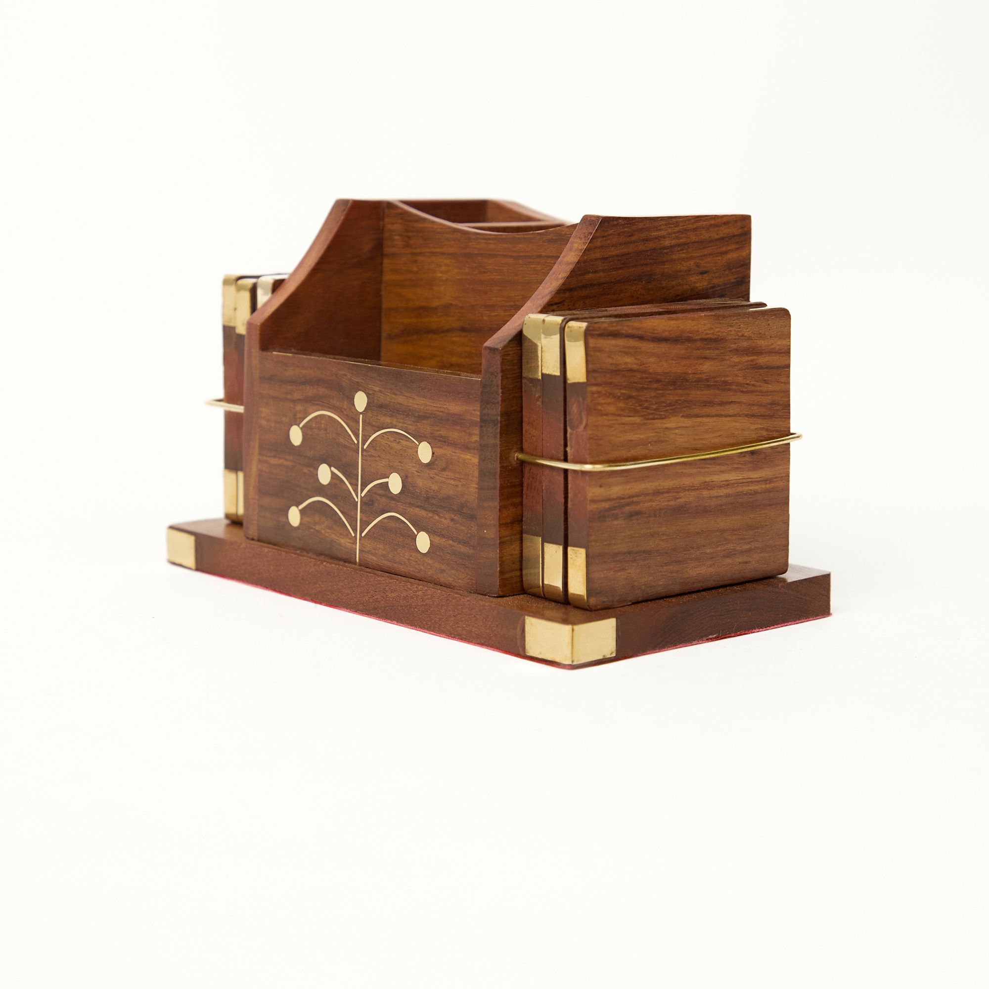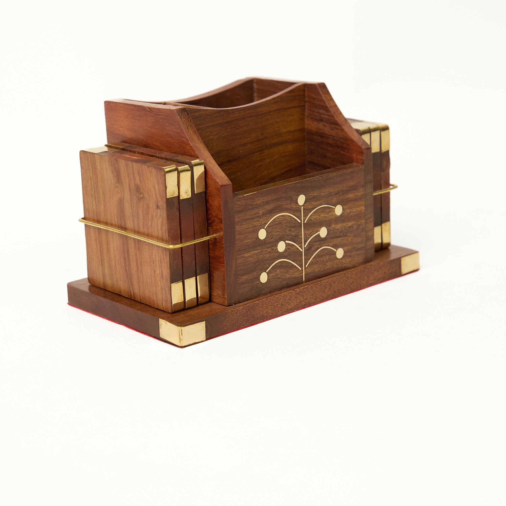 Wooden Coaster with Mobile Stand & Pen Holder || Multipurpose Desk Organizer || Saras Aajeevika